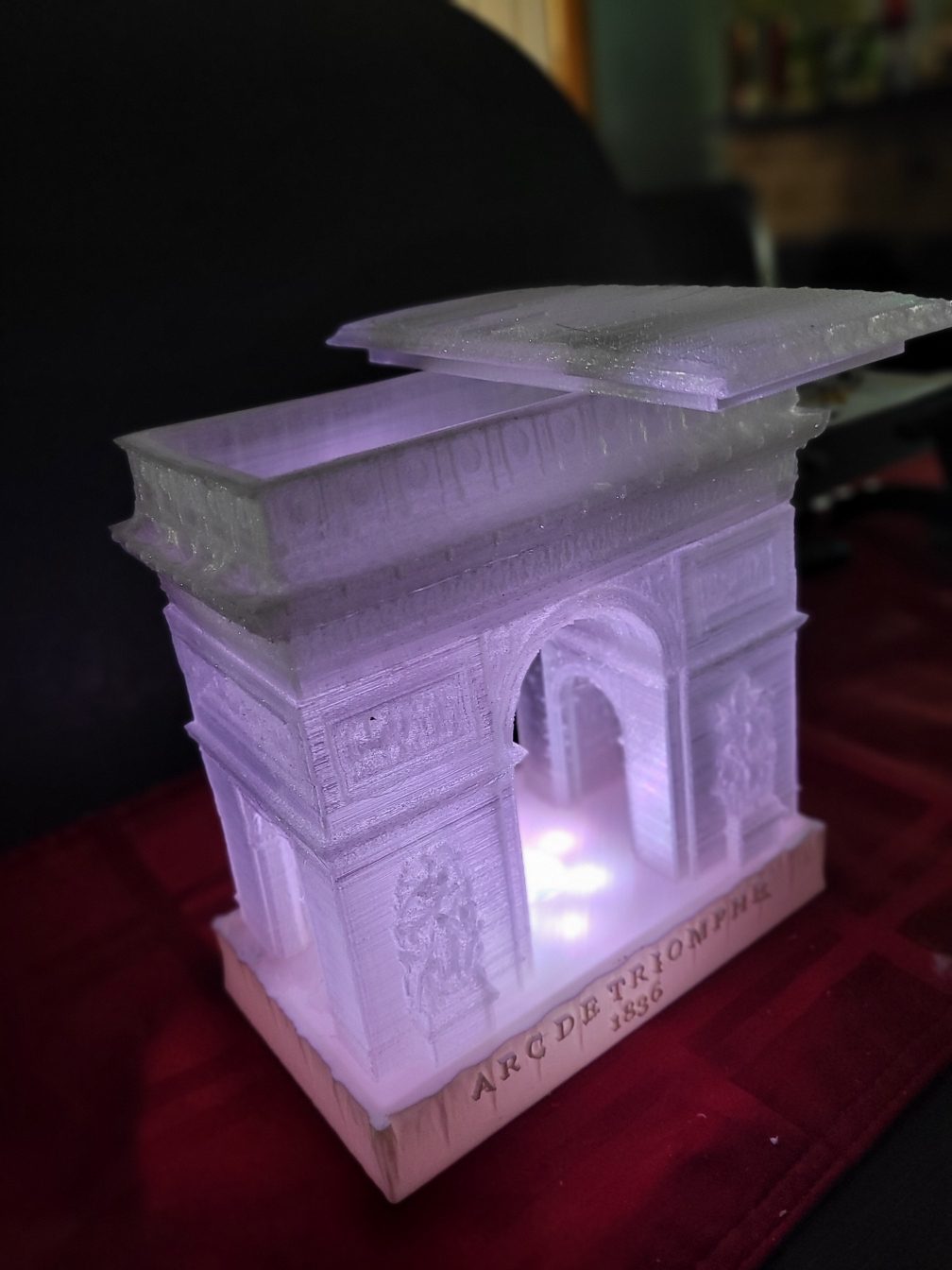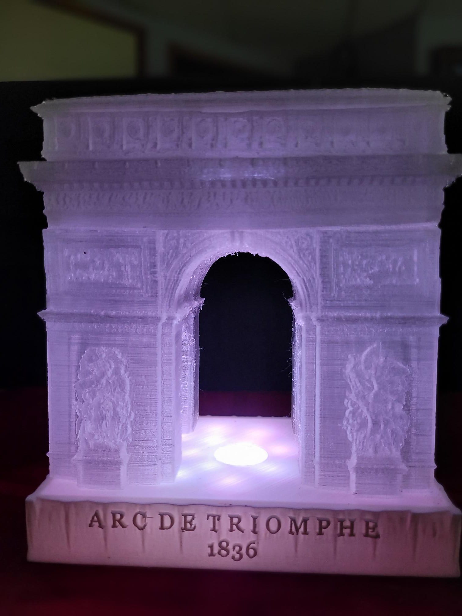 Arc de Triomphe munument with illuminated multicolor leds controlled with a remote control offering several animations with color variation 3D printed.