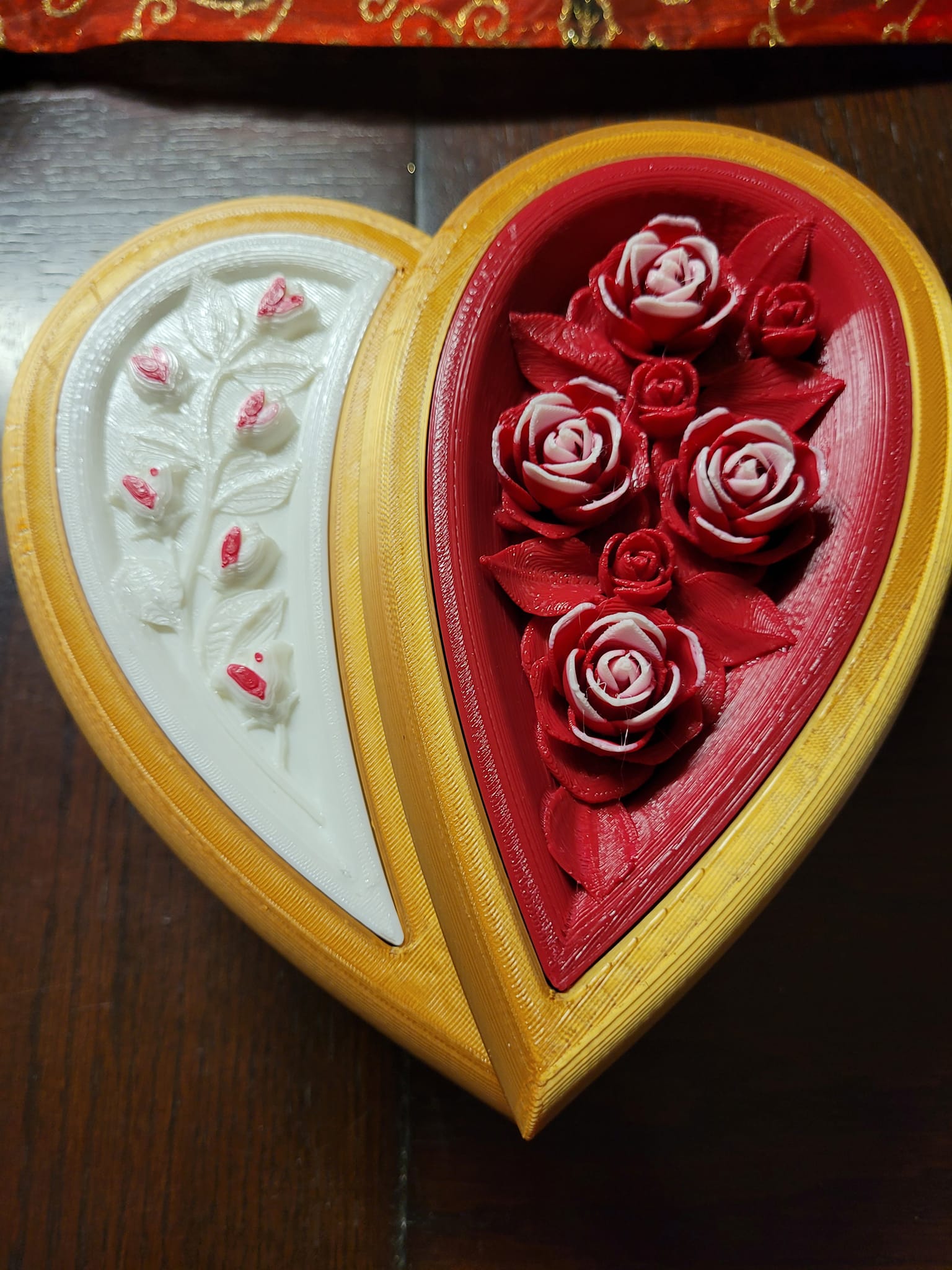 Heart-Shaped Jewelry Box with two inside trays and a lid.