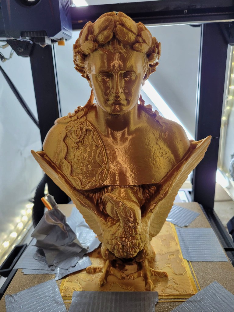 Napoleon Bonaparte statuette wonderful Gold-shine colored statue made of solid plastic mounted on an inscribed white base with name plate at his name, date of his birth and death.