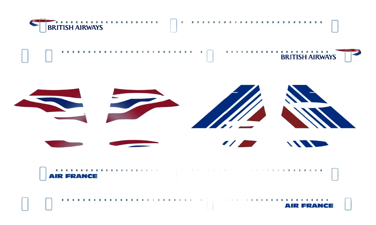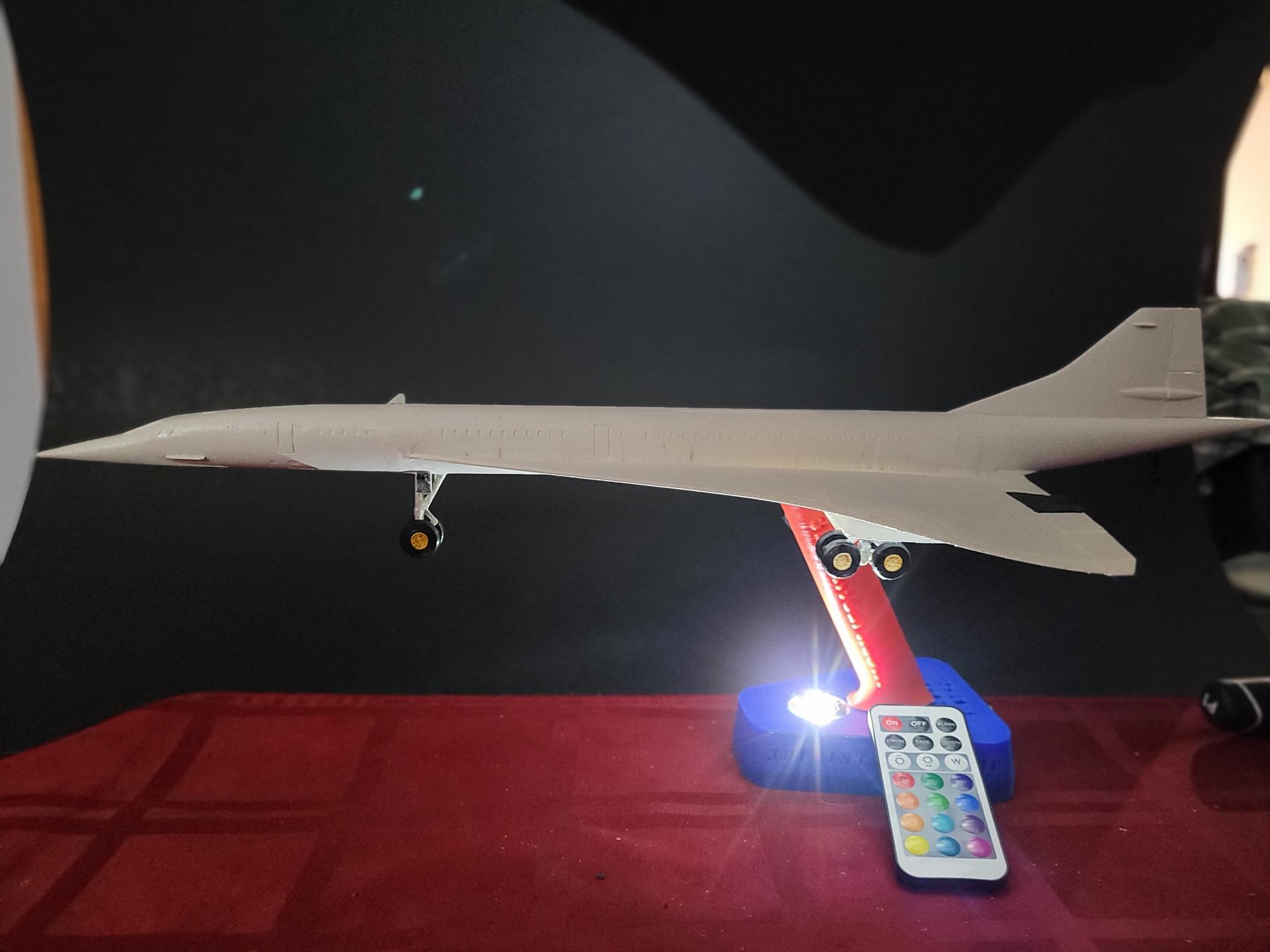 White 3D model of supersonic Concorde in kit with everything show in the picture (with decals of Air France and Britich Airways), but not include body extra paint, and the different colors and batteries.